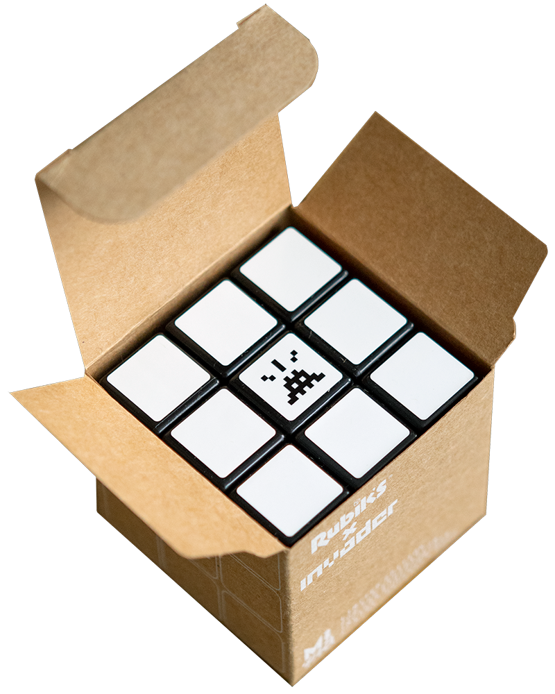 Limited edition of an invaded Rubik’s cube™  made to celebrate the exhibition Invader Runikcubist at MIMA in Brussels.